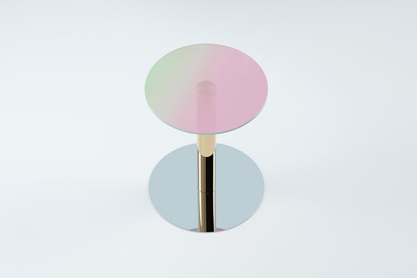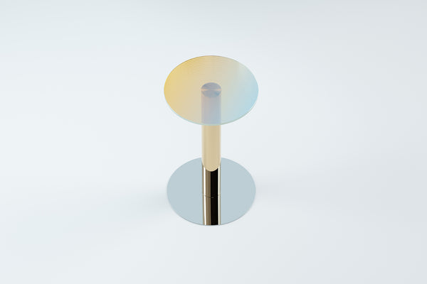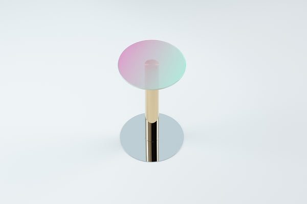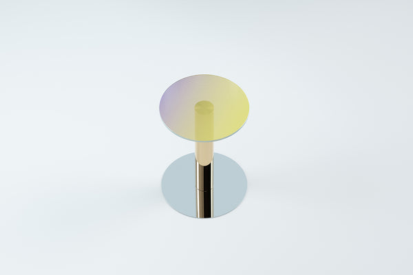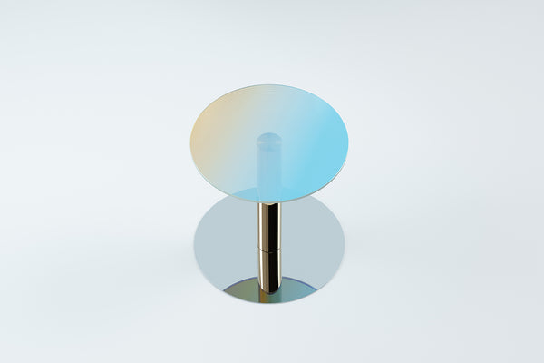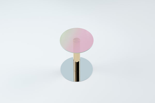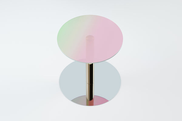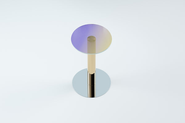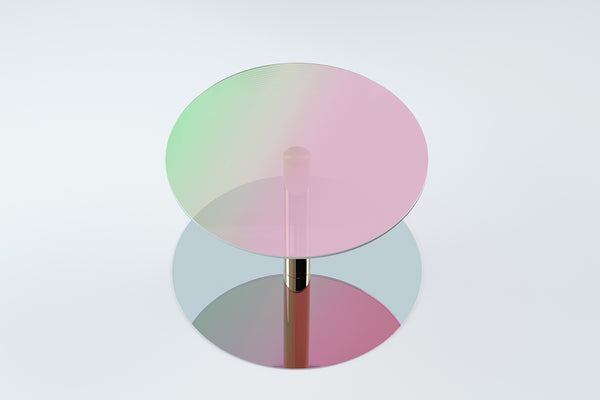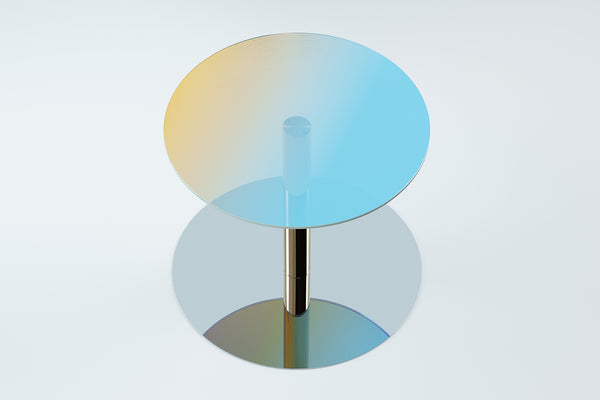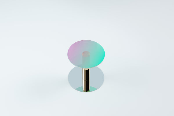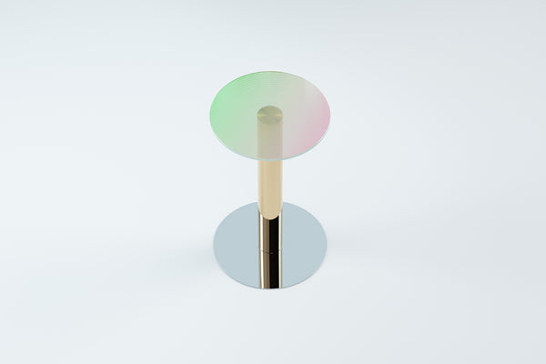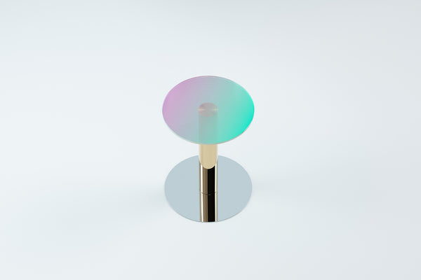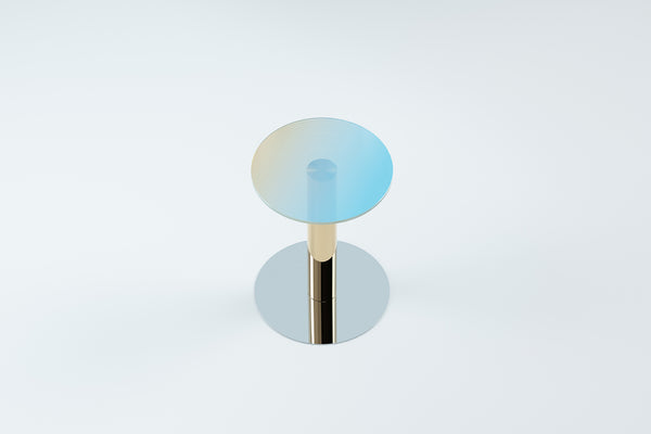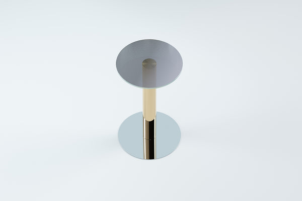 Material: stainless steel, dichroic glass (laminated security glass), rod: brass coated