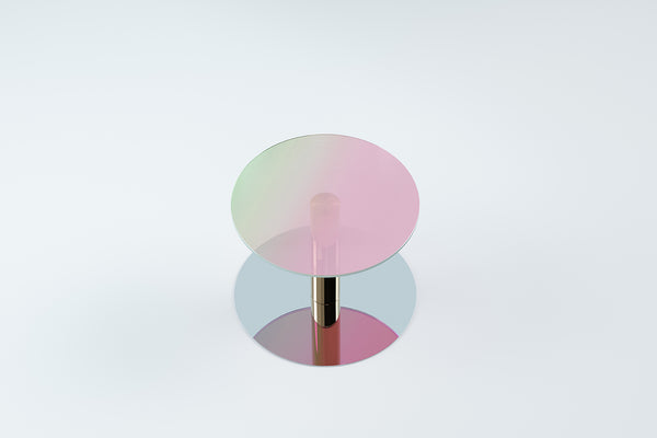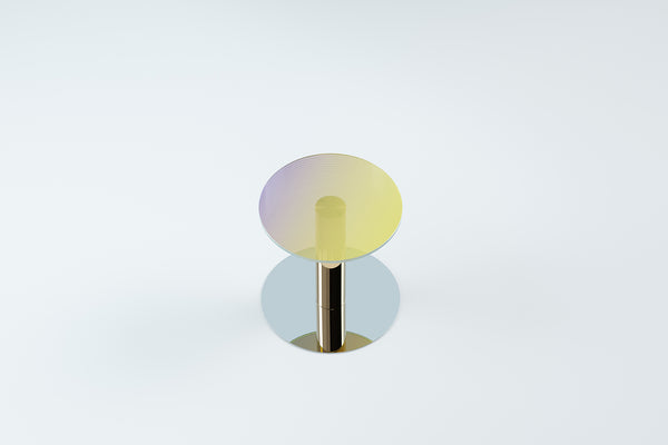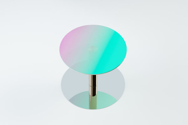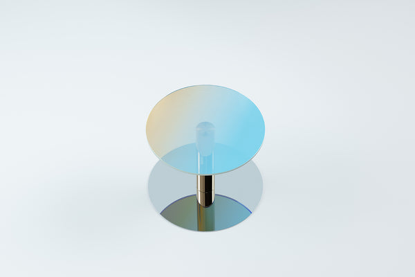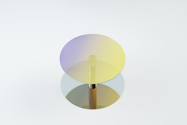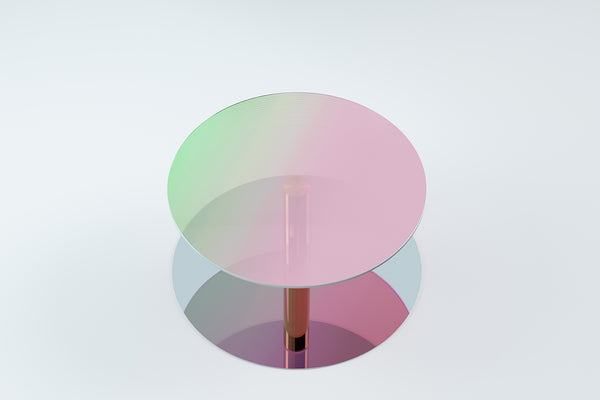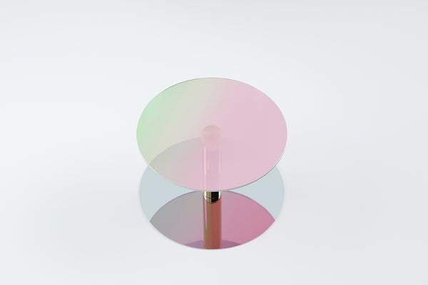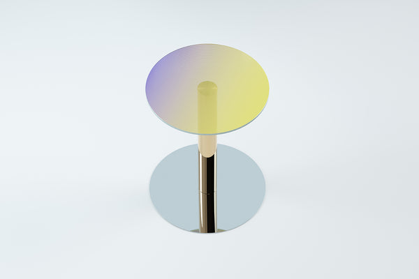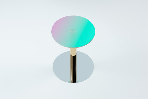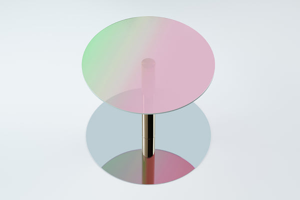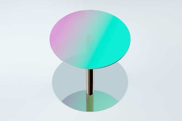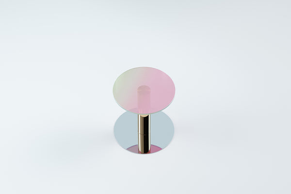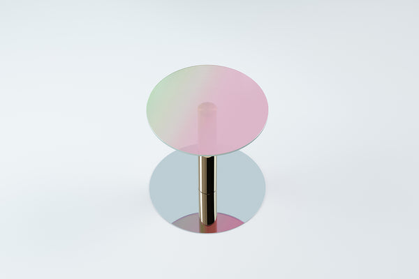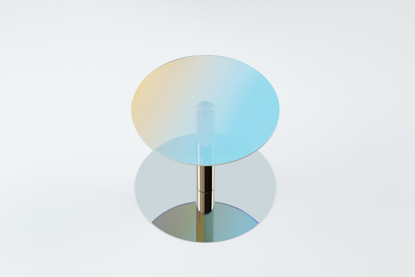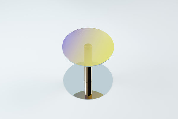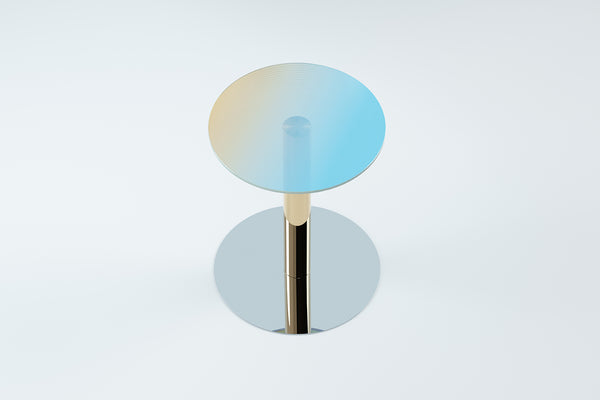 Material: stainless steel, dichroic glass (laminated security glass), rod: brass coated