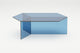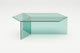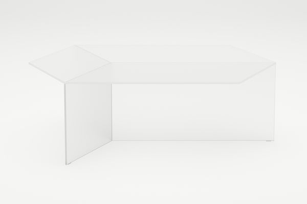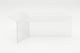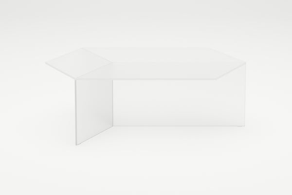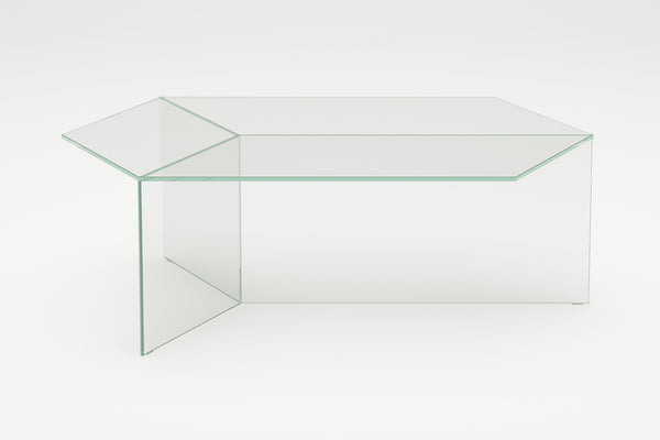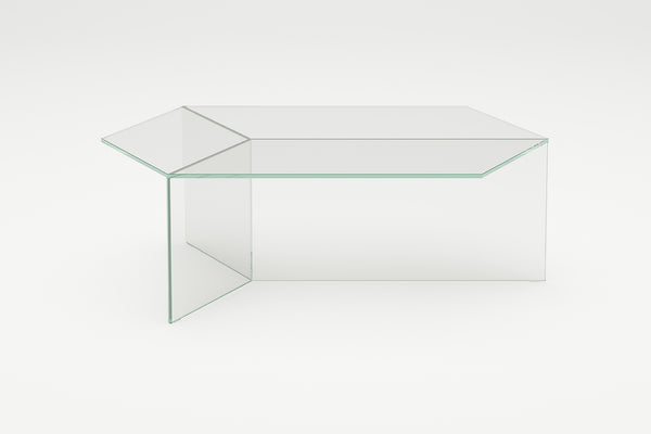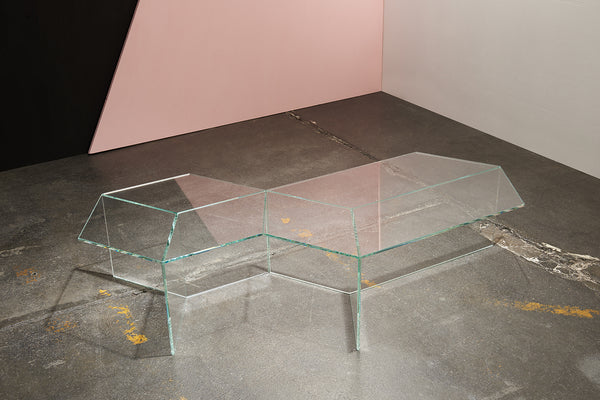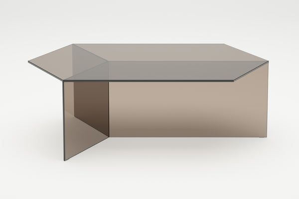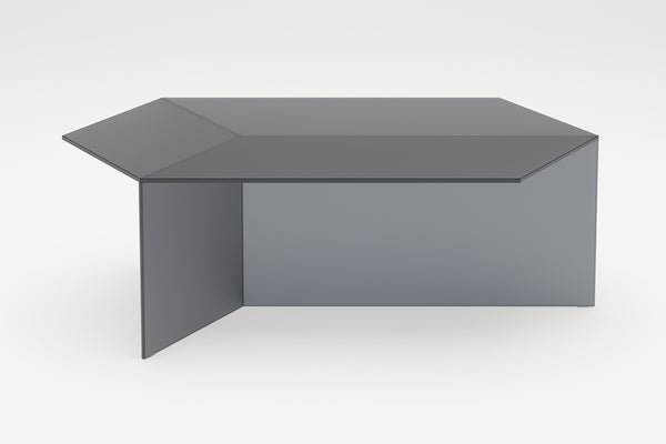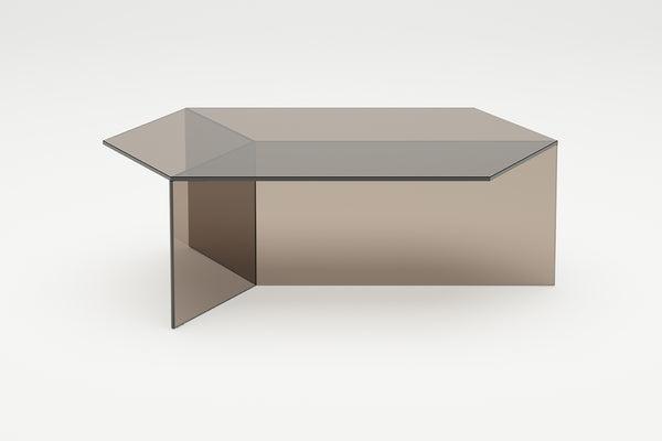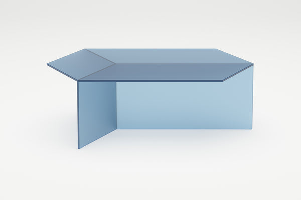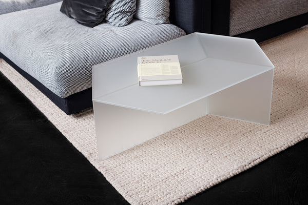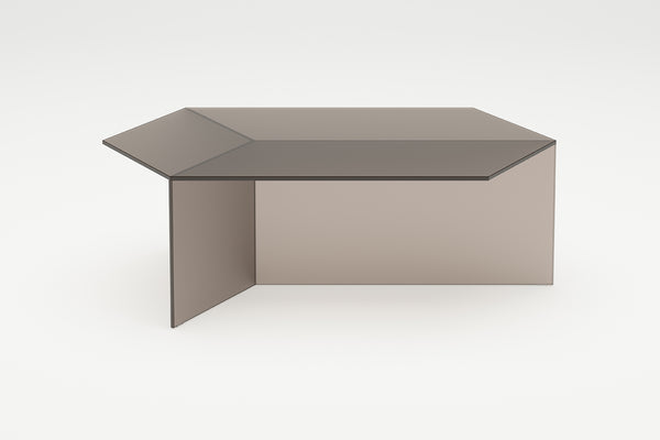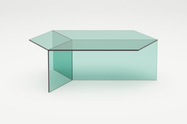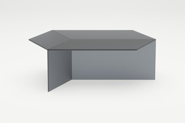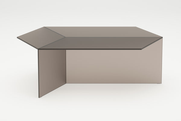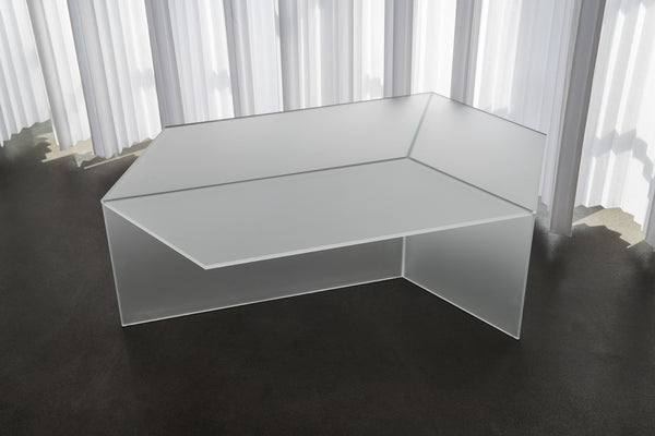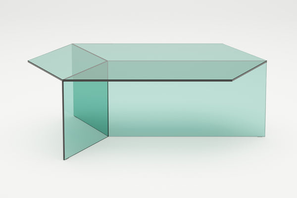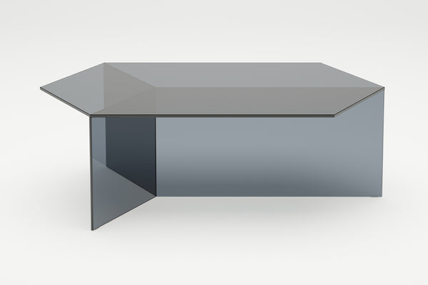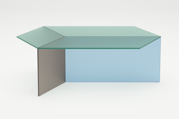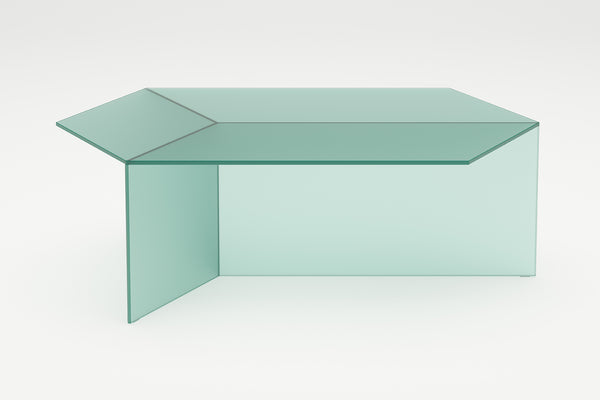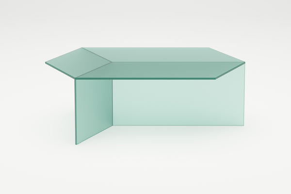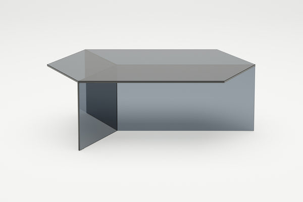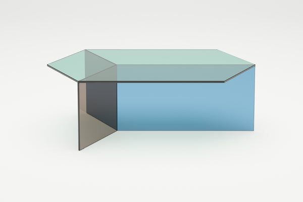 The Isom tables play with a fascinating optical illusion. The hexagonal glass panel is UV glued with three vertical foot elements whose edges, viewed from a certain angle, convey the perfect isometric drawing of a cube. A special detail are the CNC-ground double mitres and the seamless bonding of the foot elements. The different sizes and variants can be combined very well. The glass tables are available in four colours, each in clear glass and satin glass. Design: Sebastian Scherer