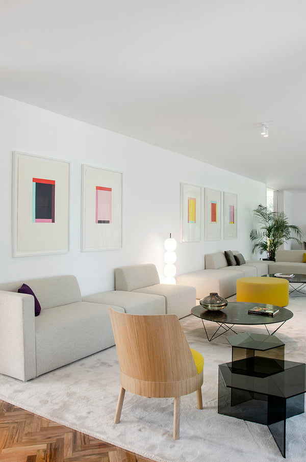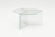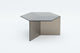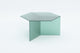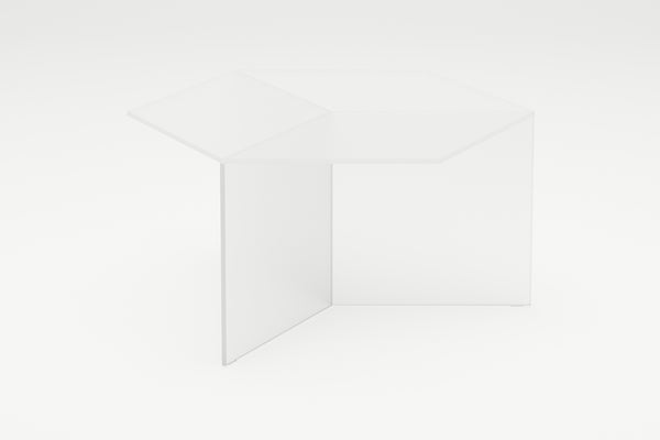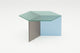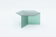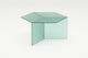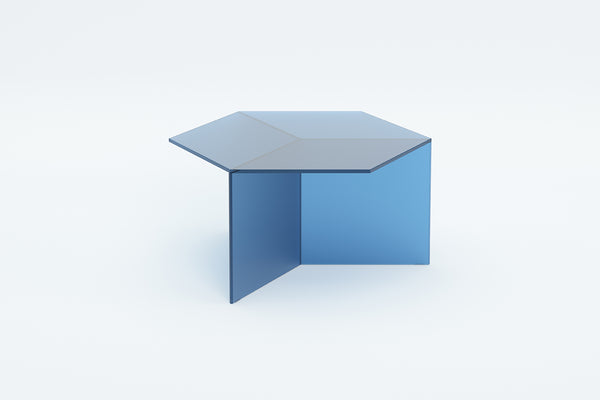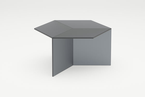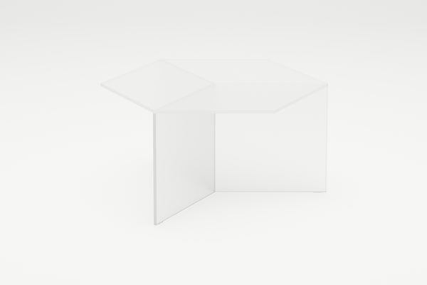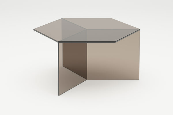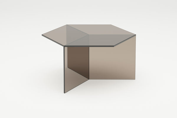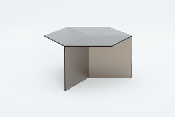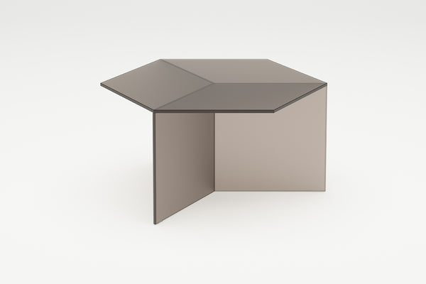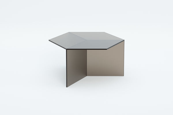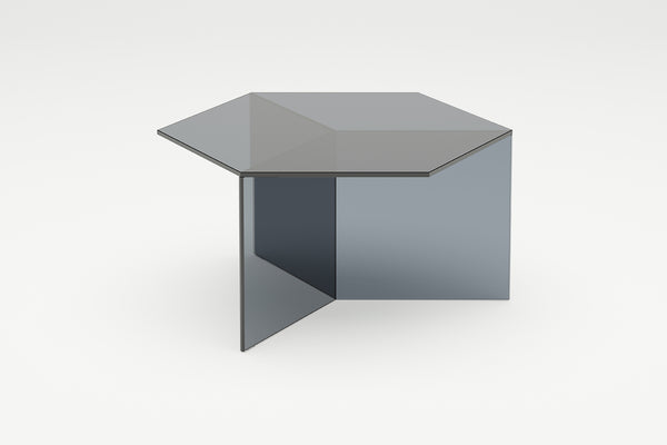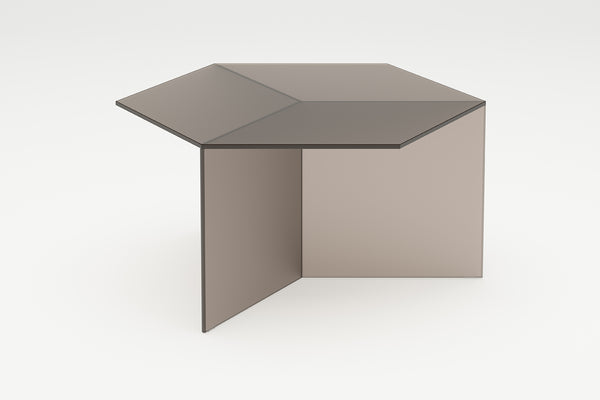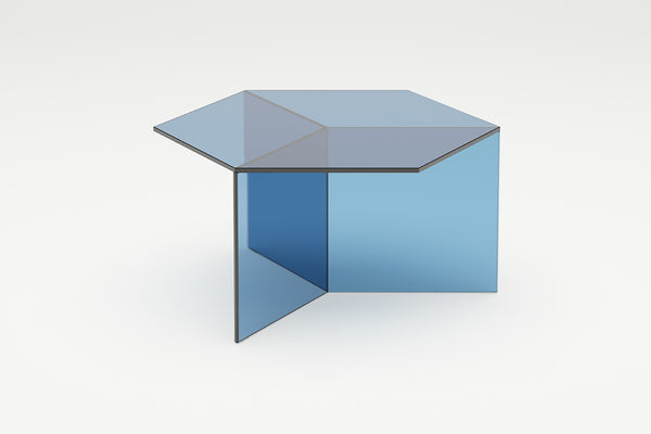 The Isom tables play with a fascinating optical illusion. The hexagonal glass panel is UV glued with three vertical foot elements whose edges, viewed from a certain angle, convey the perfect isometric drawing of a cube. A special detail are the CNC-ground double mitres and the seamless bonding of the foot elements. The different sizes and variants can be combined very well. The glass tables are available in four colours, each in clear glass and satin glass. Design: Sebastian Scherer