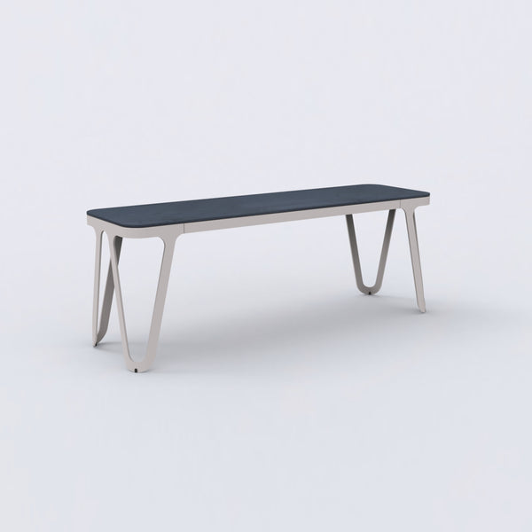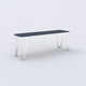 The Loop series is characterized by its elegant and futuristic design language. The soft, yet geometric lines have a Scandinavian design reference, but also reminiscent of metal furniture of the Bauhaus era. All furniture in the series follow the same design principle. The only 6 mm thin aluminum frame is cut from a metal sheet and then bent. This gives it its stability and forms its characteristic, loop-like silhouette. This consistent design principle and craftsmanship make the Loop series so unique. Small embedded plastic gliders are discreetly integrated in the frame without disturbing the overall impression.