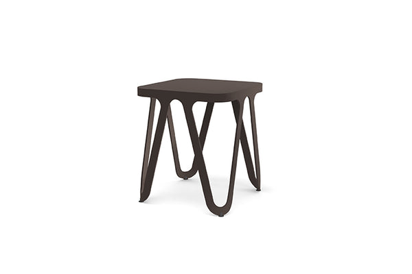 The frame and seat of the Loop Stool are welded to one, only 3.2 kg lightweight furniture. The very stable and versatile aluminum furniture can be used both indoors and outdoors. Design: Sebastian Scherer