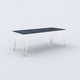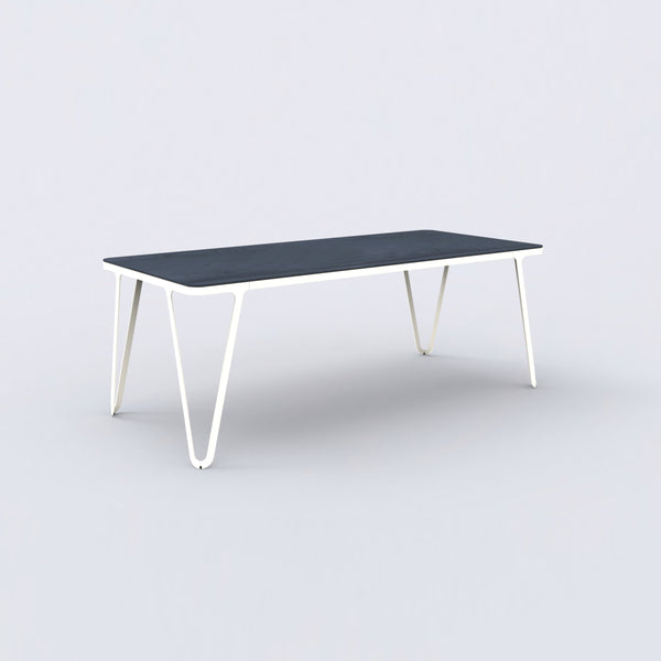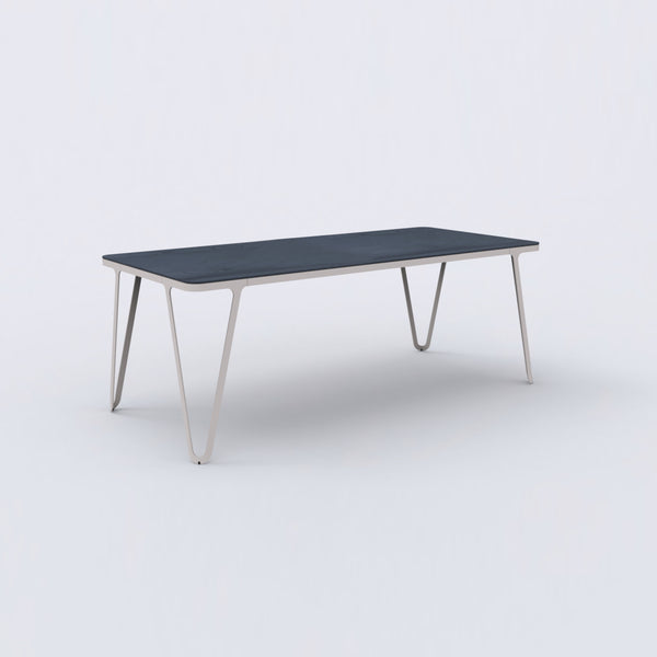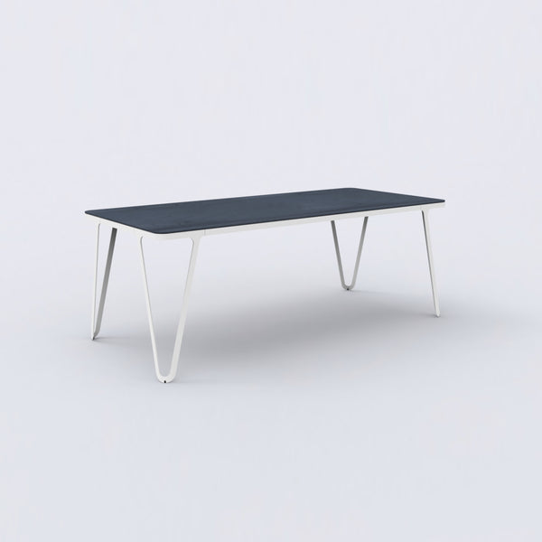 The Loop series is characterized by its elegant and futuristic design language. The soft, yet geometric lines have a Scandinavian design reference, but also reminiscent of metal furniture of the Bauhaus era. All furniture in the series follow the same design principle. The only 6 mm thin aluminum frame is cut from a metal sheet and then bent. This gives it its stability and forms its characteristic, loop-like silhouette. This consistent design principle and craftsmanship make the Loop series so unique. Small embedded plastic gliders are discreetly integrated in the frame without disturbing the overall impression.