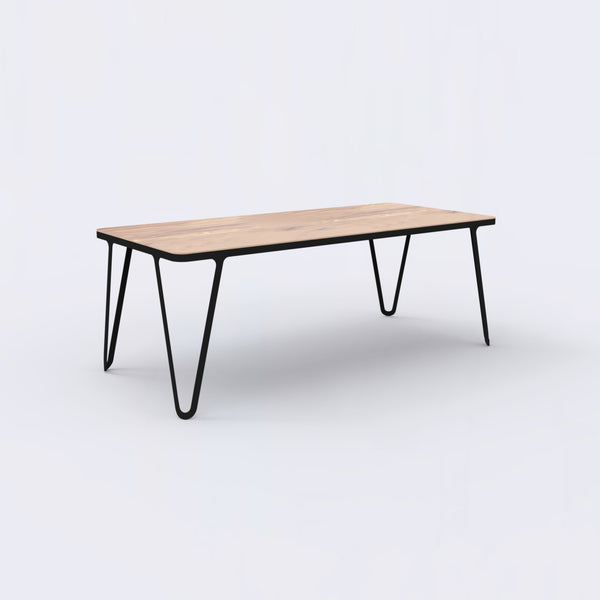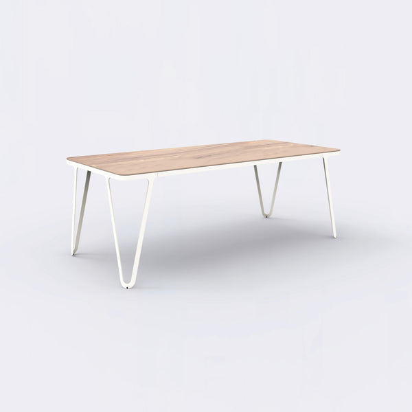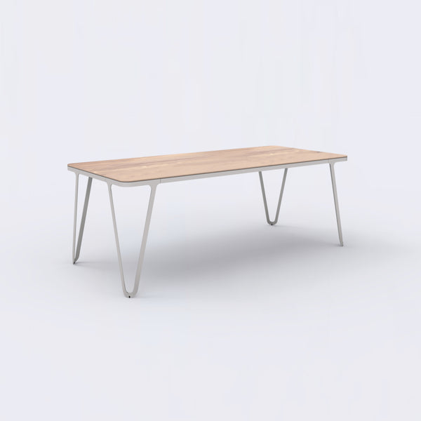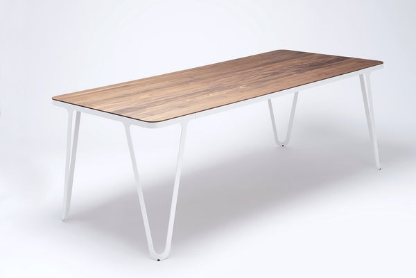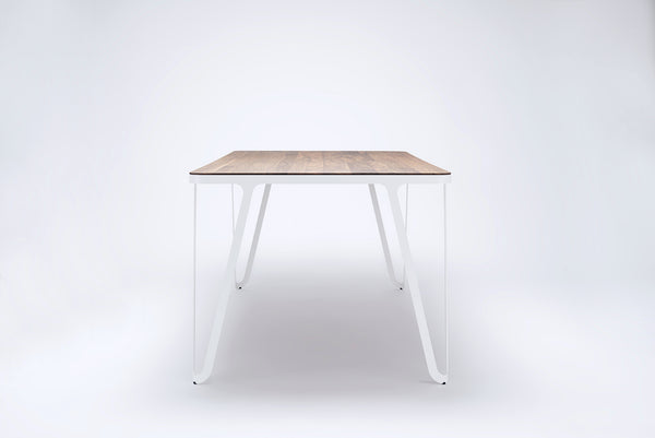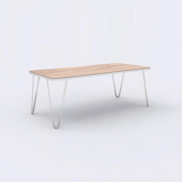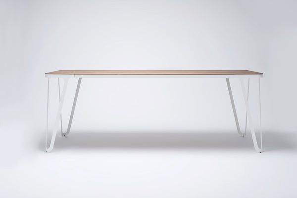 The elegant Loop Table, which is very light for a masiv wood table, offers many possible combinations with its three wood variants and four frame colors. The extra matt natural effect coating preserves the natural look and feel of the solid wood panel and is characterized by its special easy care. A post-treatment as with oiled plates is not required. Design: Sebastian Scherer