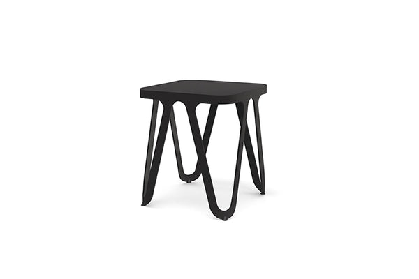 The frame and seat of the Loop Stool are welded to one, only 3.2 kg lightweight furniture. The very stable and versatile aluminum furniture can be used both indoors and outdoors. Design: Sebastian Scherer
