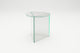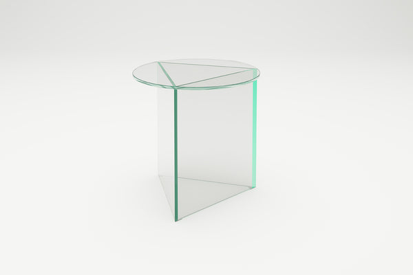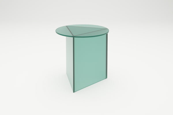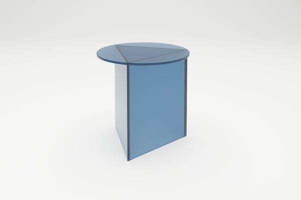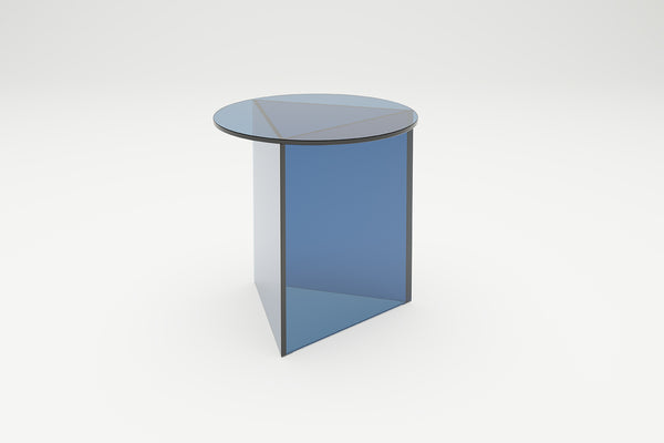 Triangle meets circle. The idea for PRISMA is based on a simple idea : on a triangular base lies a round table top of the same size. A special feature are the tapered edges of the base. This sophisticated detail gives the table its filigree and at the same time monolithic-sculptural appearance. The prism-shaped base also gives the table its name. PRISMA is available in the three versions "Tall", "Circle" and "Oblong", each in the materials glass, travertine and steel. In the glass version, the interplay of the dark edges and overlapping of the coloured glass surfaces creates an abstract geometric sculpture. The thin edge in the metal version creates a very filigree aesthetic, while the monolithic overall impression dominates in marble. Design: Sebastian Scherer